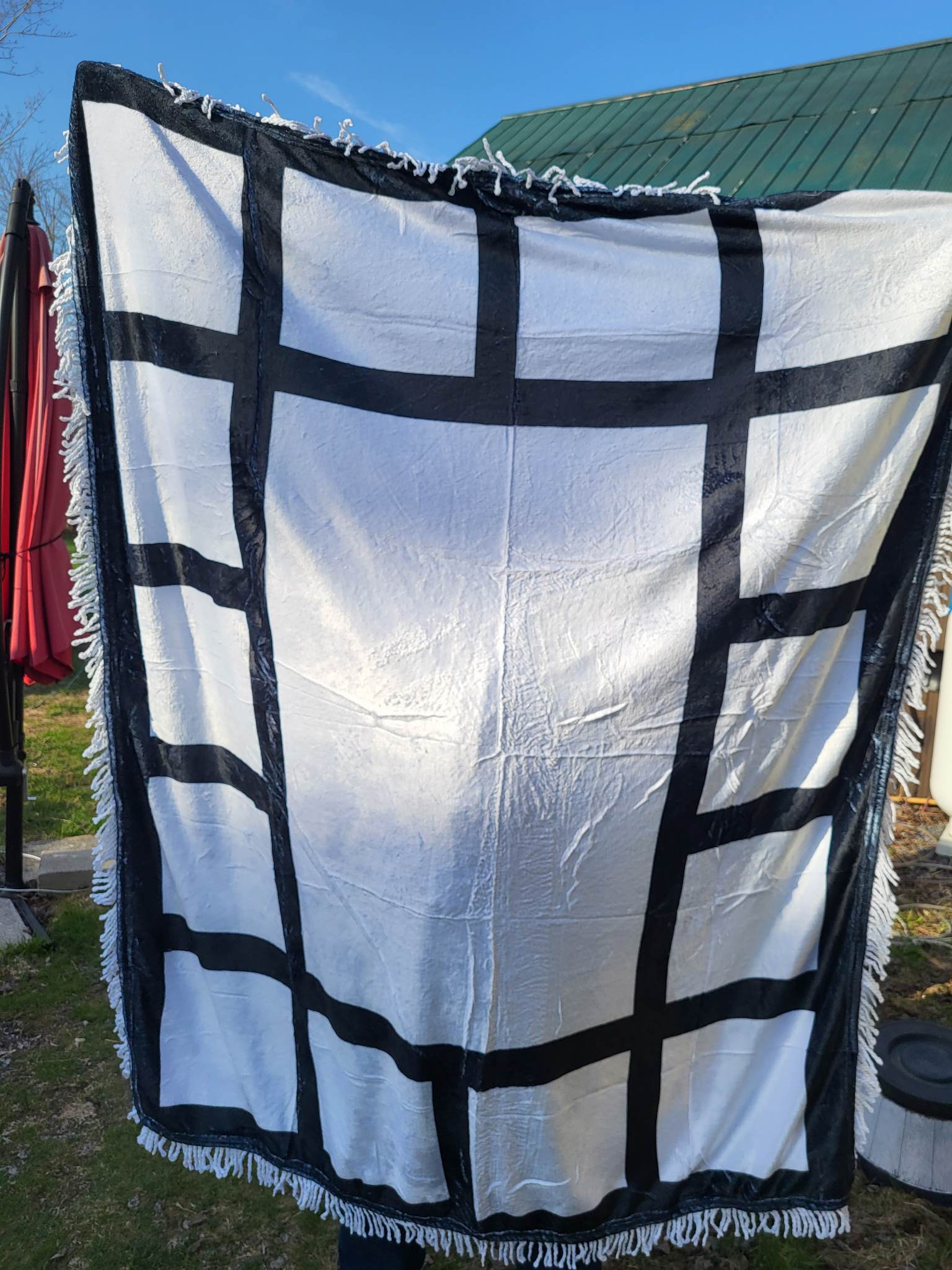 Sublimation Photo Blankets - fleece - soft fluffy 48" x 60". 15 photo panels, outer photos measure 8"x10", large middle photo (use for sayings, designs, muli-photos) is 17" x 34". Available with or without outer fringe.