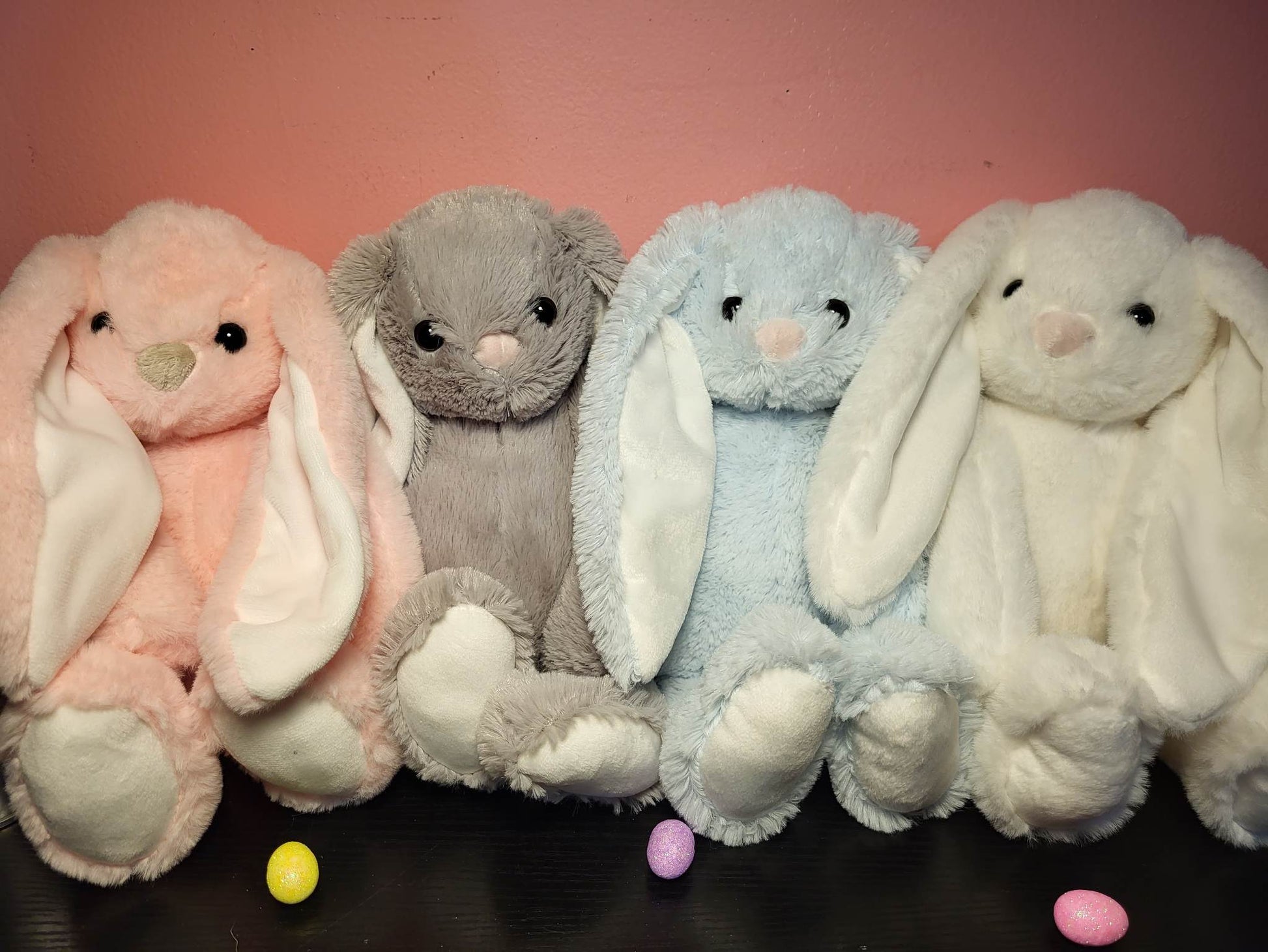 Super soft sublimation Easter bunnies, sublimation feet & ears, also great for HTV. Available in limited quantities of pink, gray, white and blue. 30cm tall (approx 12 inches).