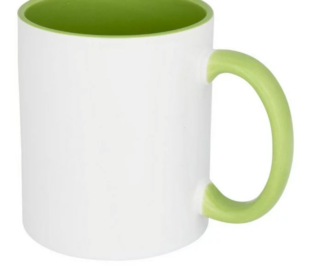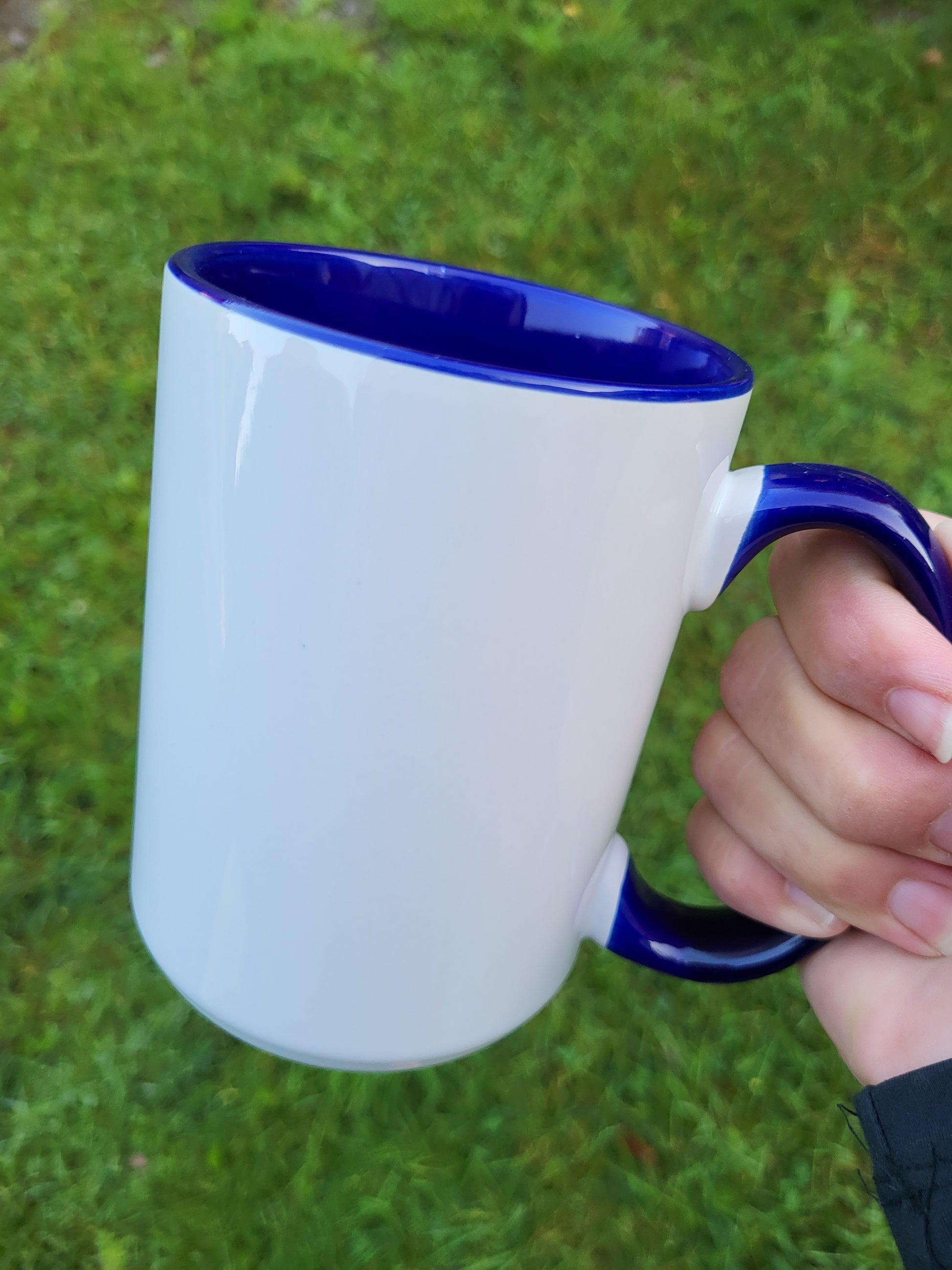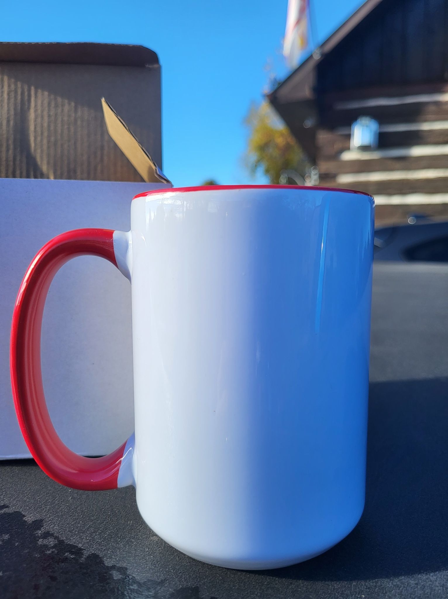 15 oz Sublimation white mugs with black, red, pink, navy, light green & light blue handle and inner mugs, WITH INDIVIDUAL BOXES.