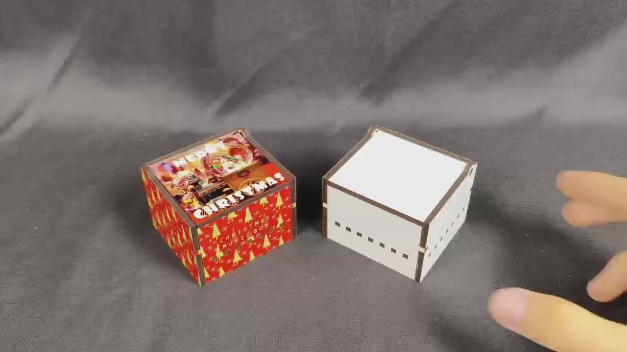 Sublimation Christmas Music Boxes - boxed and unassembled for easy shipping, plays We Wish You A Merry Christmas (do not overwind key).