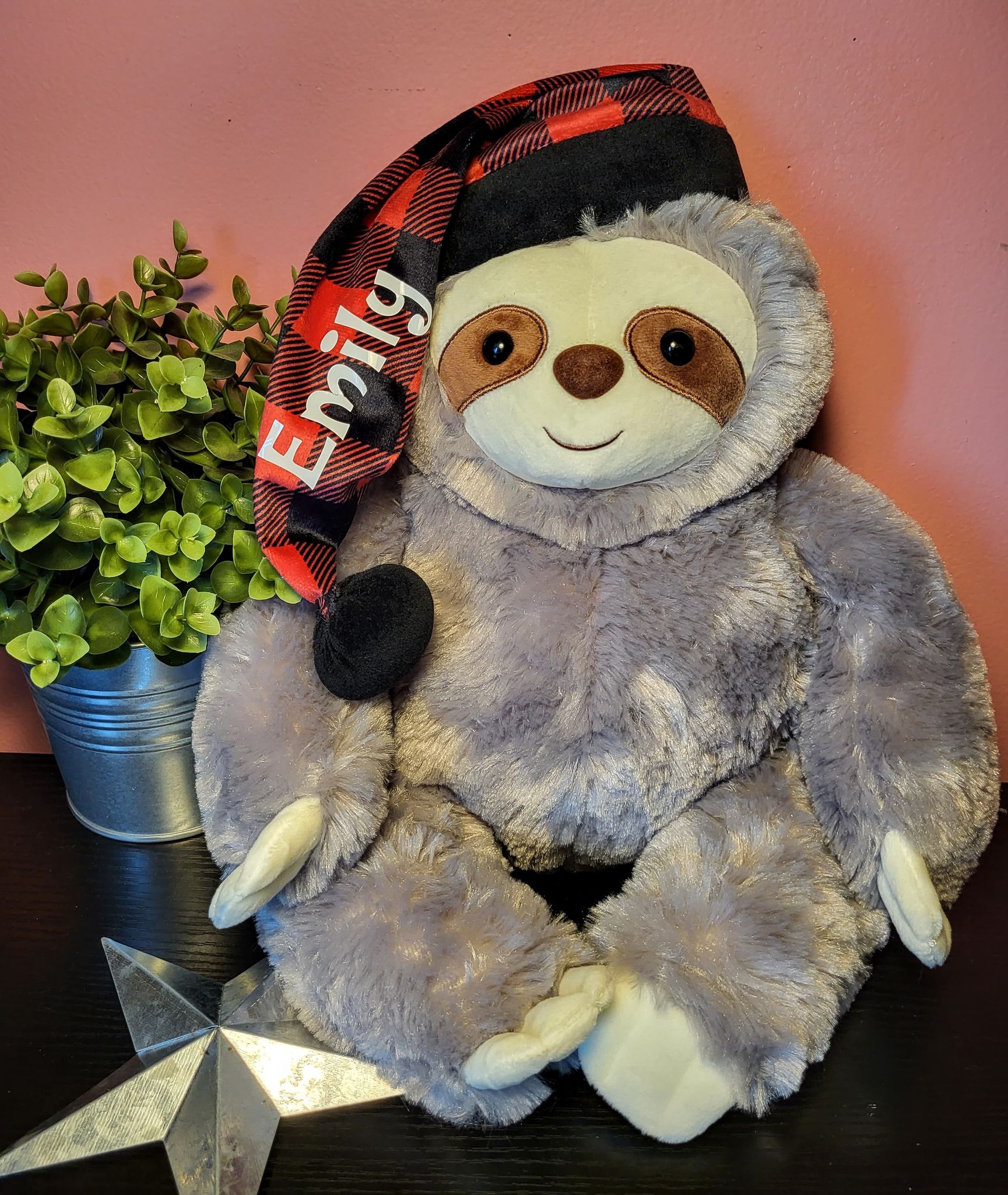 Sloth - Plush with Buffalo Plaid Nightcaps