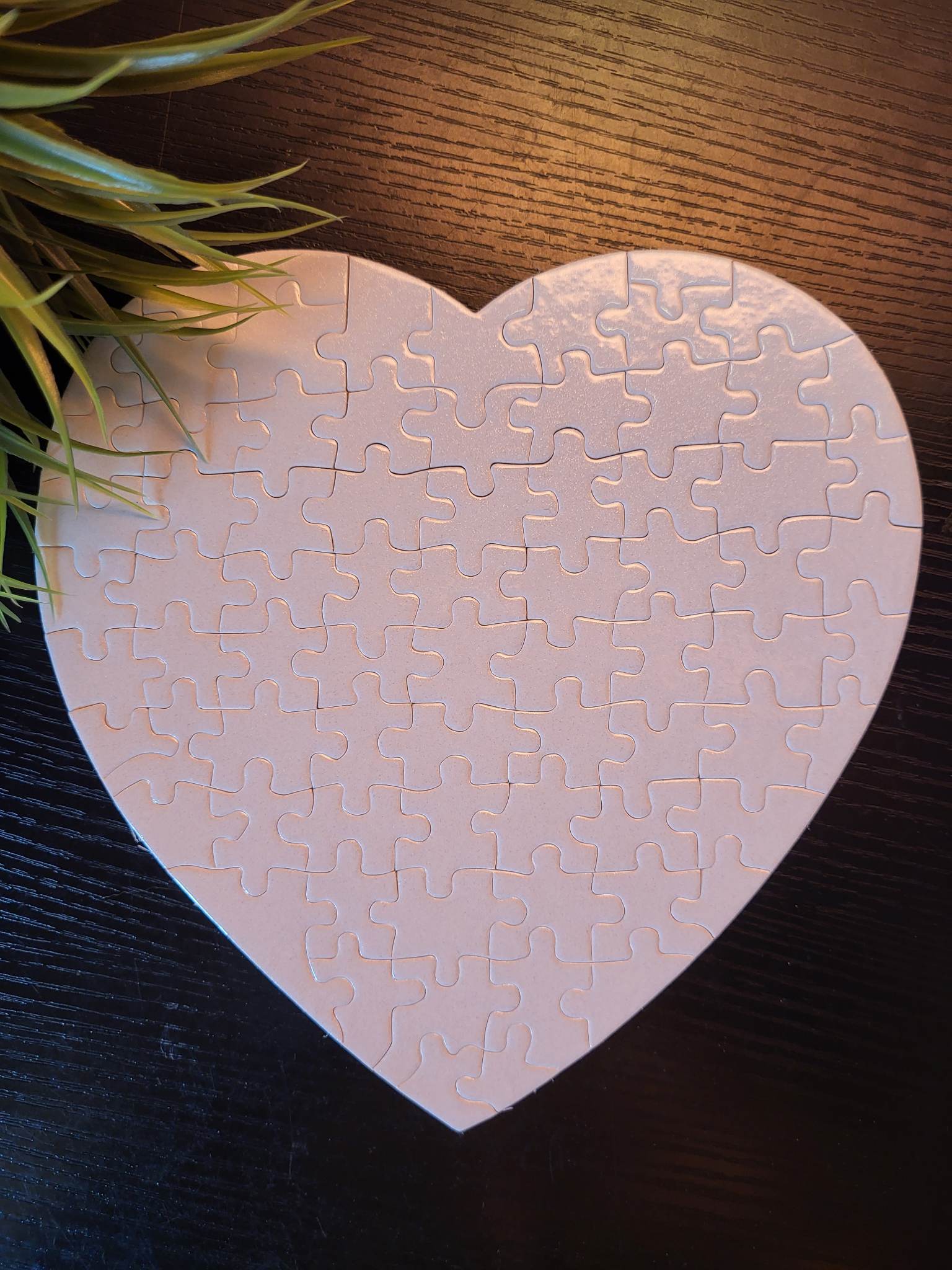 19cm x 19cm Sublimation heart puzzles, 75 pieces, individually wrapped with cardboard backing. Perfect for Valentine's Day or any day.