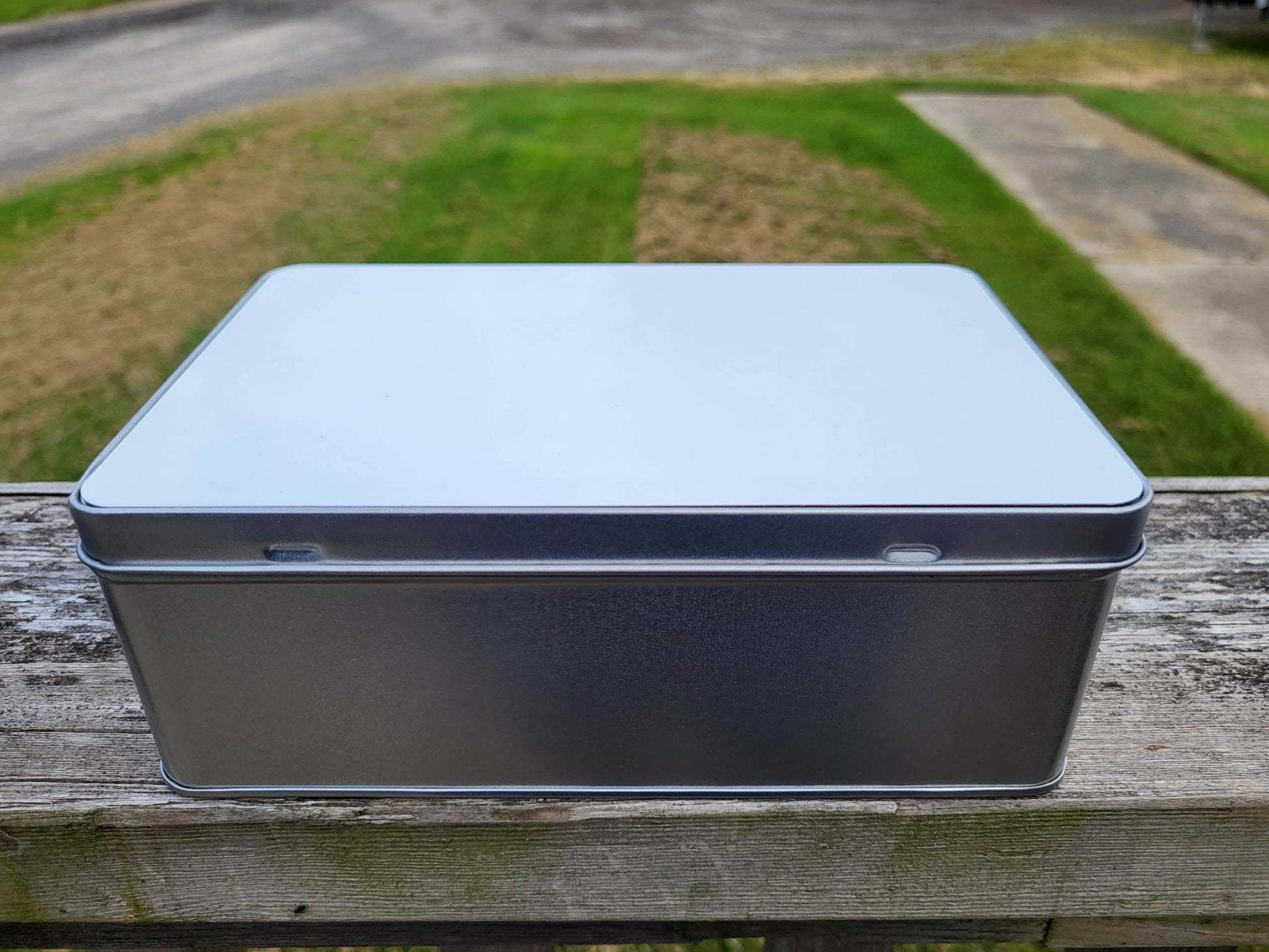 Rectangle and round tin keepsake boxes with sublimation panel lid. Come individually boxed and feature a semi-gloss white sublimation panel that adhere to the lid. Rectangle tins are approx