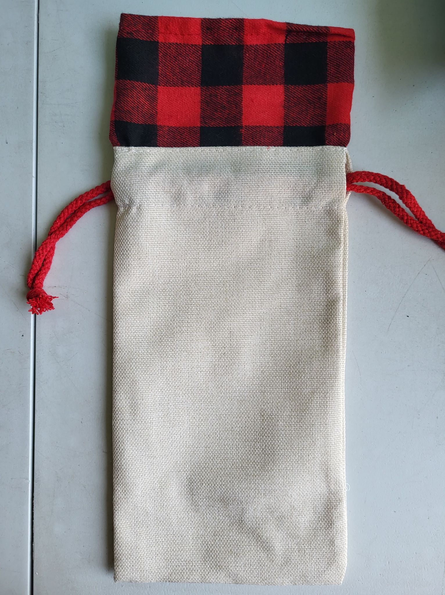 Linen & Buffalo Plaid Wine Bags.  14" Great for personalization with HTV.